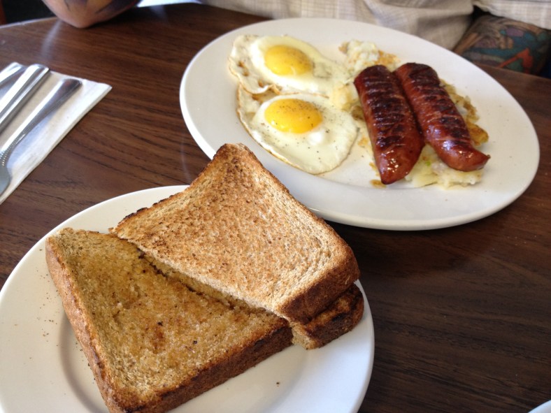 Eggs, Farmer’s Sausage & Toast at the Hilltop Diner Cafe
